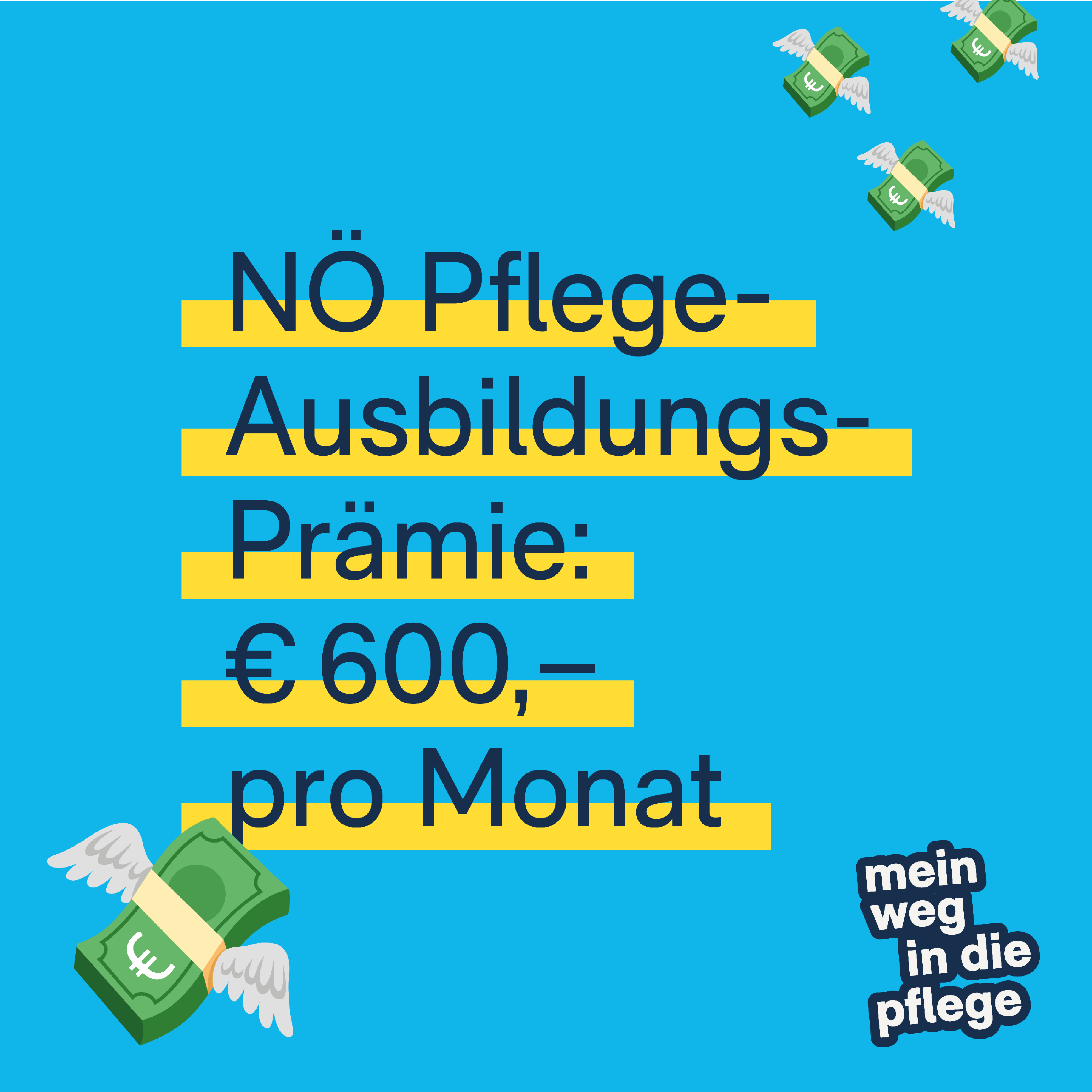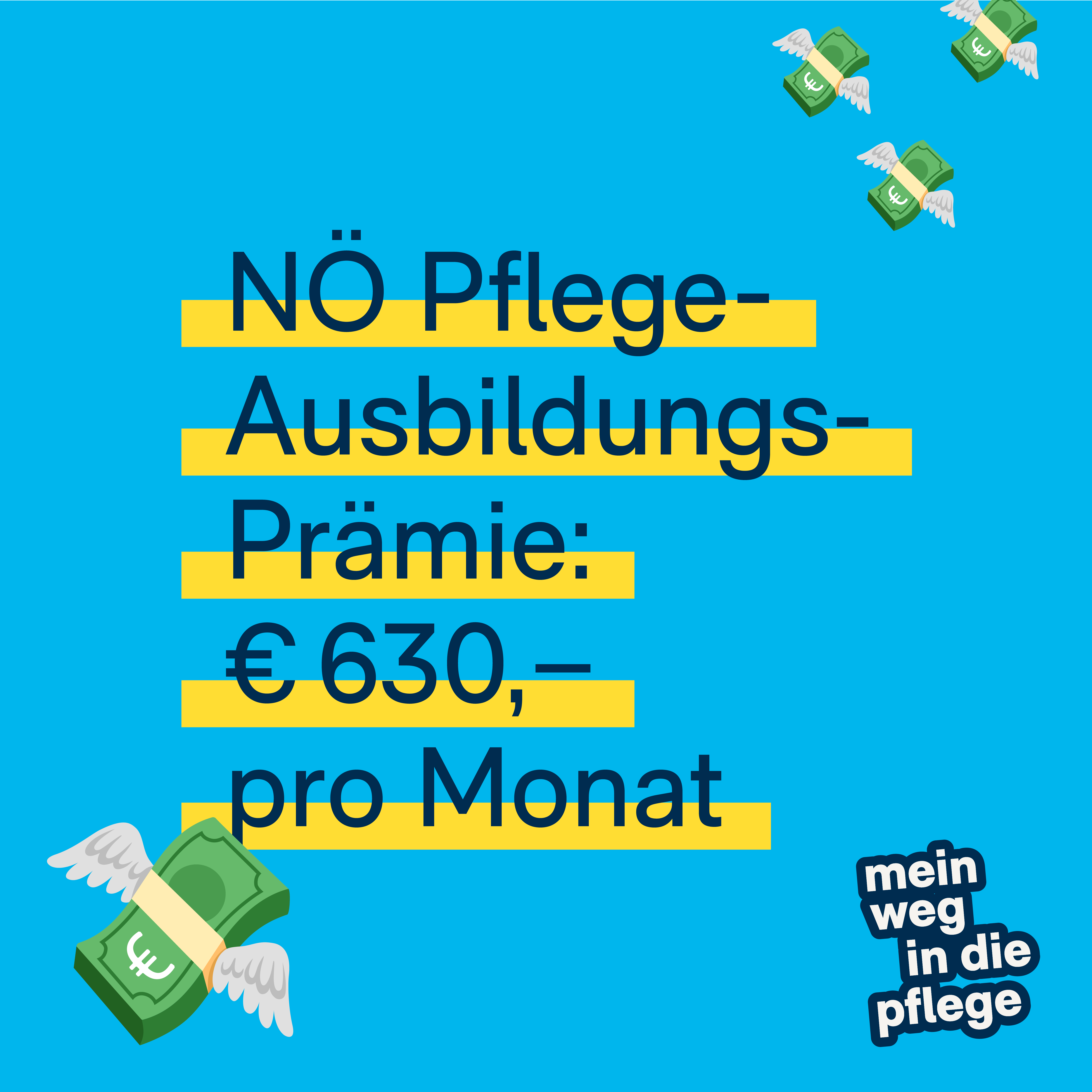 Das Land Niederösterreich gewährt für Ausbildungen in Niederösterreich zur Pflegeassistenz, Pflegefachassistenz, zur Diplom-Sozialbetreuerin/zum Diplom-Sozialbetreuer oder zur Fach-Sozialbetreuerin/zum Fach-Sozialbetreuer oder bei Absolvierung des FH-Bachelors Gesundheits- und Krankenpflege eine Prämie (12 Mal pro Jahr) jeweils für die Mindestdauer dieser Ausbildung.